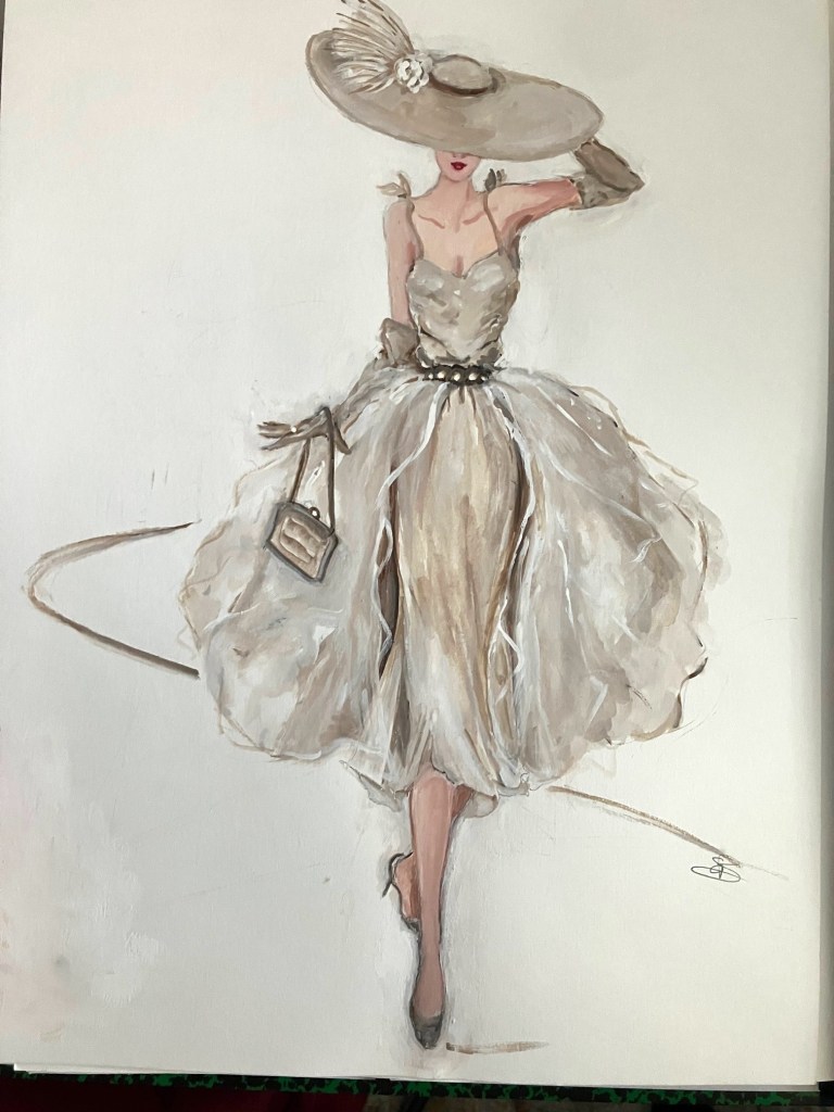 My preferred medium is gouache, and I paint the delightful, the desirable, the elegant and the bewitching. Inspired by fashion, history, mythology, and the decorative arts, I dip into my box of paints to conjure colourful narratives celebrating the beauty and mystique of the feminine psyche.