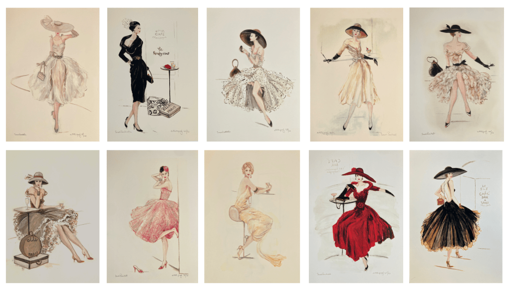 Thank you too for looking at my work, and I hope ‘les elegantes’ who once adorned the boulevards, bistros, bars and cafes of Paris, will also enchant your space with their presence.